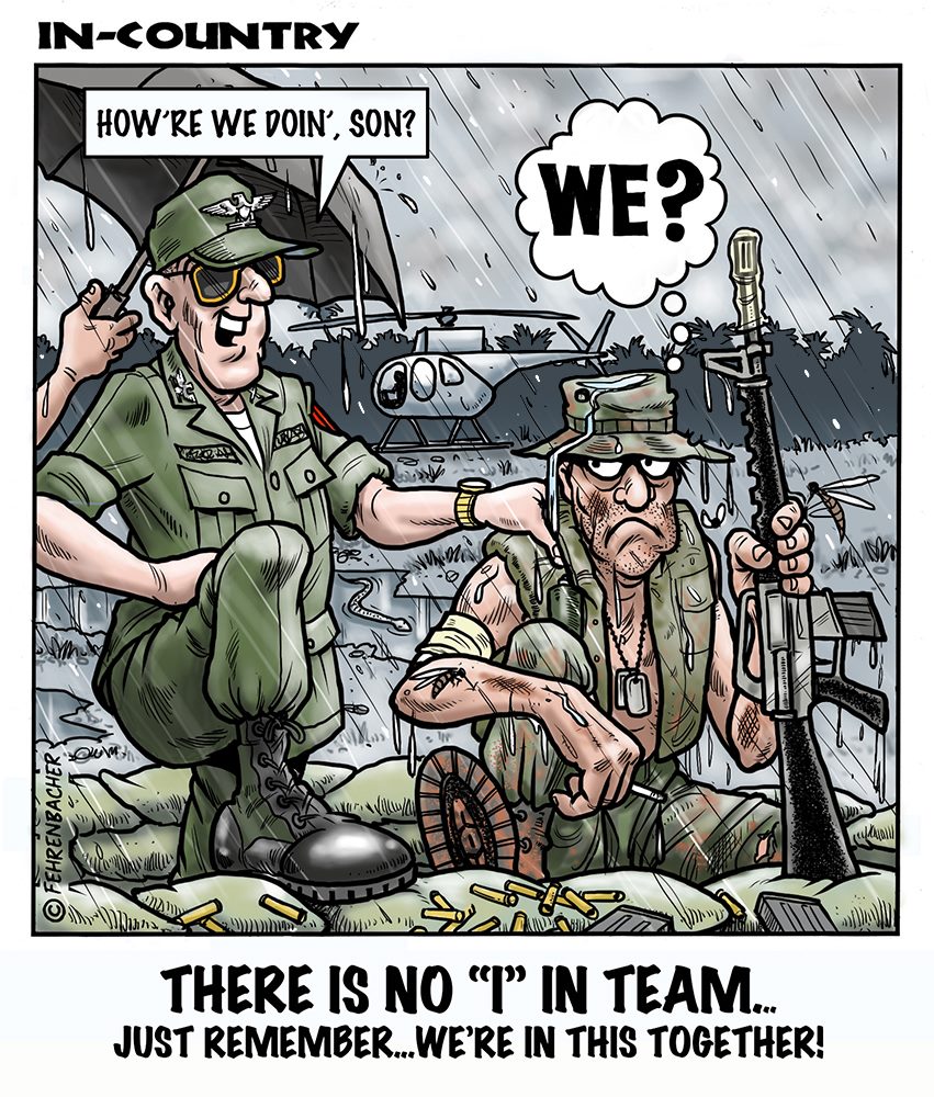 Phil enlisted in the Army in 1965 where you served for years in Vietnam. He became a graphic designer and has worked for the state of Oregon for 26 years. He retired in 2003 and started the Cartoon "In-Country". The cartoons reflect his experiences during his tour of duty in South Vietnam.
