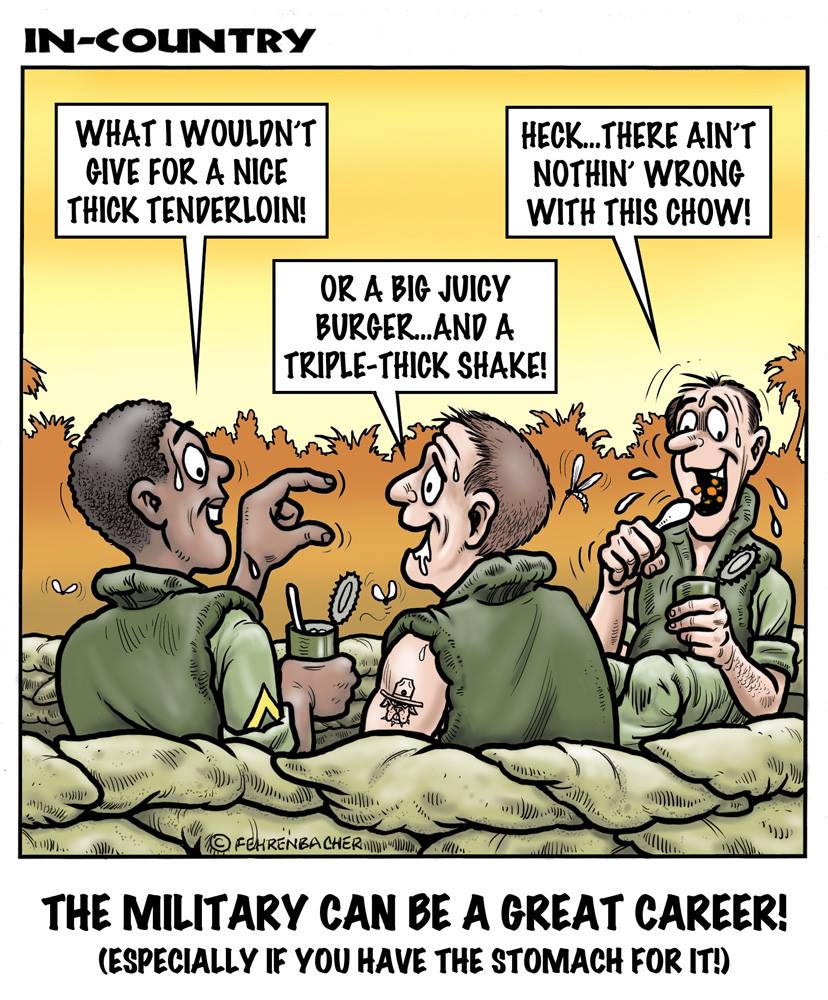 Phil enlisted in the Army in 1965 where you served for years in Vietnam. He became a graphic designer and has worked for the state of Oregon for 26 years. He retired in 2003 and started the Cartoon "In-Country". The cartoons reflect his experiences during his tour of duty in South Vietnam.